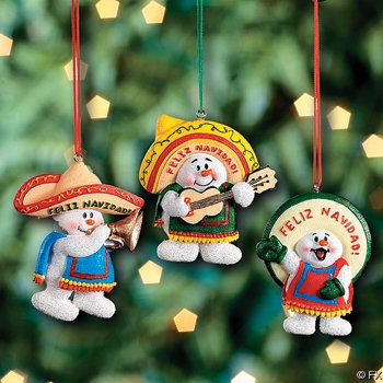 Picture of 3 FELIZ Navidad SNOWMAN Christmas Ornaments/MEXICAN Holiday DECOR/Tree Decorations