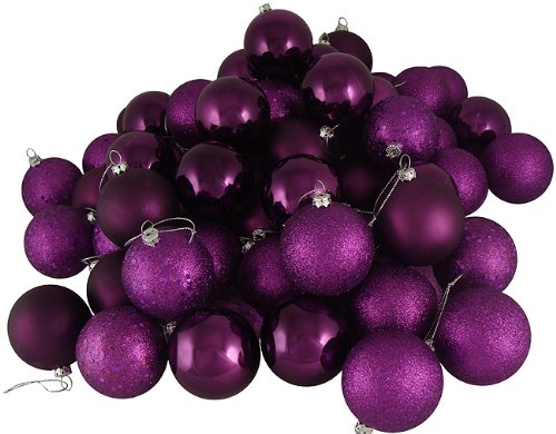 Picture of 60ct Purple Passion Shatterproof 4-Finish Christmas Ball Ornaments 2.5" (60mm)