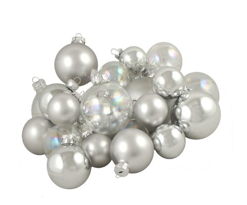 Picture of Club Pack of 23 Clear Iridescent & Silver Glass Ball Christmas Ornaments 1.5"-3"
