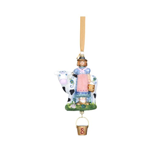 The eighth edition of reed & barton's classic "twelve days of christmas" series is beautifully executed and colorfully hand-painted. Complete with a black and white holstein cow, a young maiden with pink apron and a suspended milk can emblazoned with an "8" on its front, it is perfectly clear that 8 maids a milking are very busy indeed. Hand-glittered and adorned with swarovski elements. Elegantly packaged for gift-giving and storage.